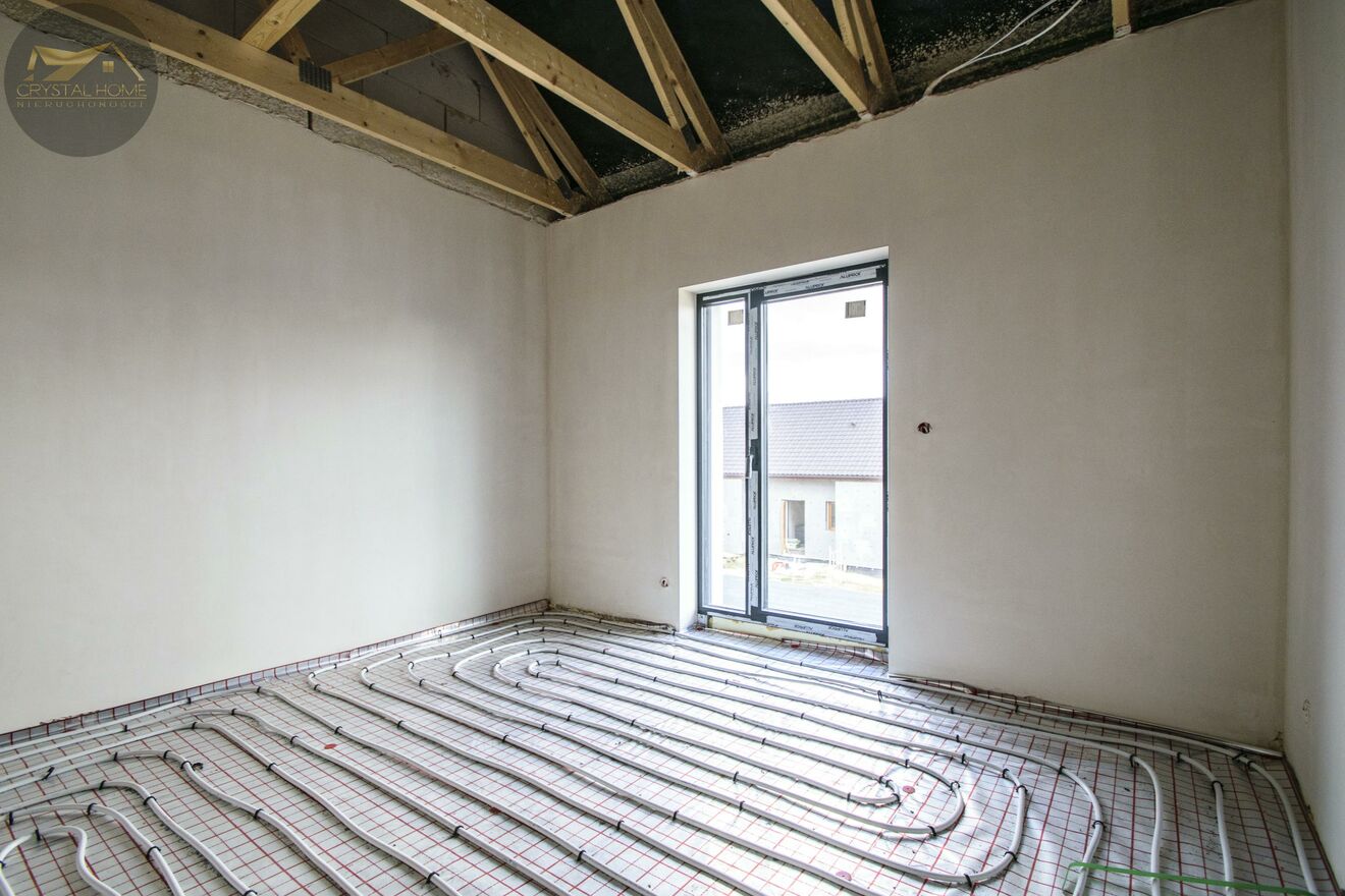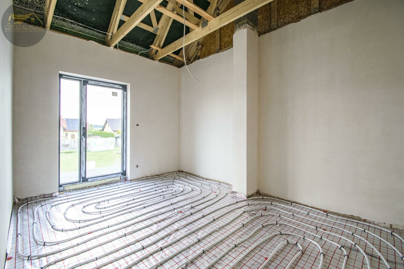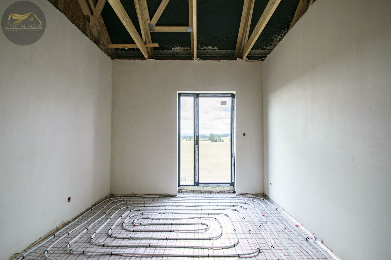 Teren wokół domu pozostaje w stanie do własnej aranżacji dzięki temu nowy właściciel może stworzyć ogród dopasowany do swoich potrzeb.
