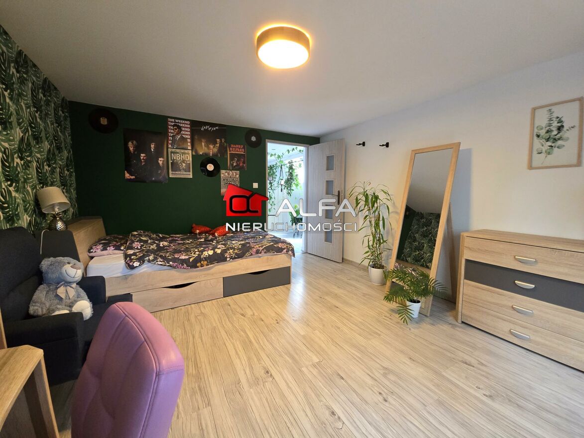 Dom wolnostojący z budynkiem gospodarczym i 2 garażami - gotowy do zamieszkania!Na powierzchnię domu składają się dwa poziomy mieszkalne. Na parterze znajduje się salon z jadalnią oraz z miejscem do pracy, duża kuchnia, dwie sypialnie oraz łazienka, przedpokój i wiatrołap. Na piętrze są dwa duże pokoje oraz łazienka i przedpokój. Z jednego z pokoi jest wyjście na taras.